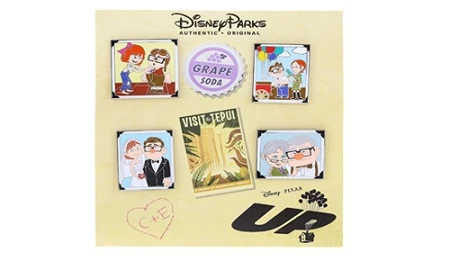 Open Edition pins feature Carl and Ellie from Disney and Pixar’s 2009 film Up. The set has four pins.