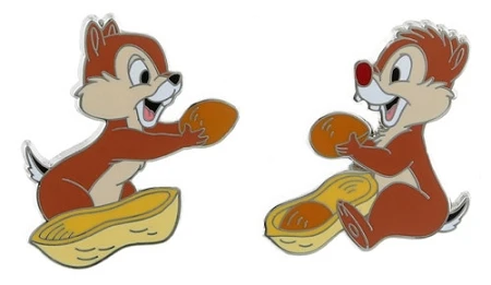 Open edition Chip & Dale playing around pin. This pin features a print screen element.