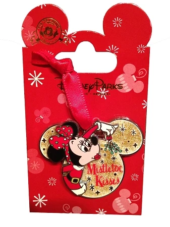Open edition Santa Minnie Ornament Mistletoe Kisses pin.