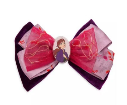She’ll glow with excitement when she wears our light-up hair accessory! Inspired by Frozen 2, the Anna cameo at the center sits atop three layers of bows – velvet, satin and organza. Threaded into the top bow are tiny lights that can be activated by pressing the button hidden in the bottom bow.