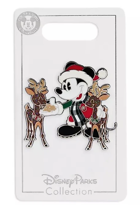 Mickey has a festive time feeding his reindeer friends on this holiday pin. With glitter accents and Mickey’s Santa hat, this accent is sure to make spirits merry and bright.