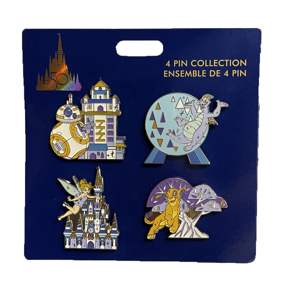 Celebrate the 50th Anniversary of Walt Disney World with this Pin Set with all 4 Parks.