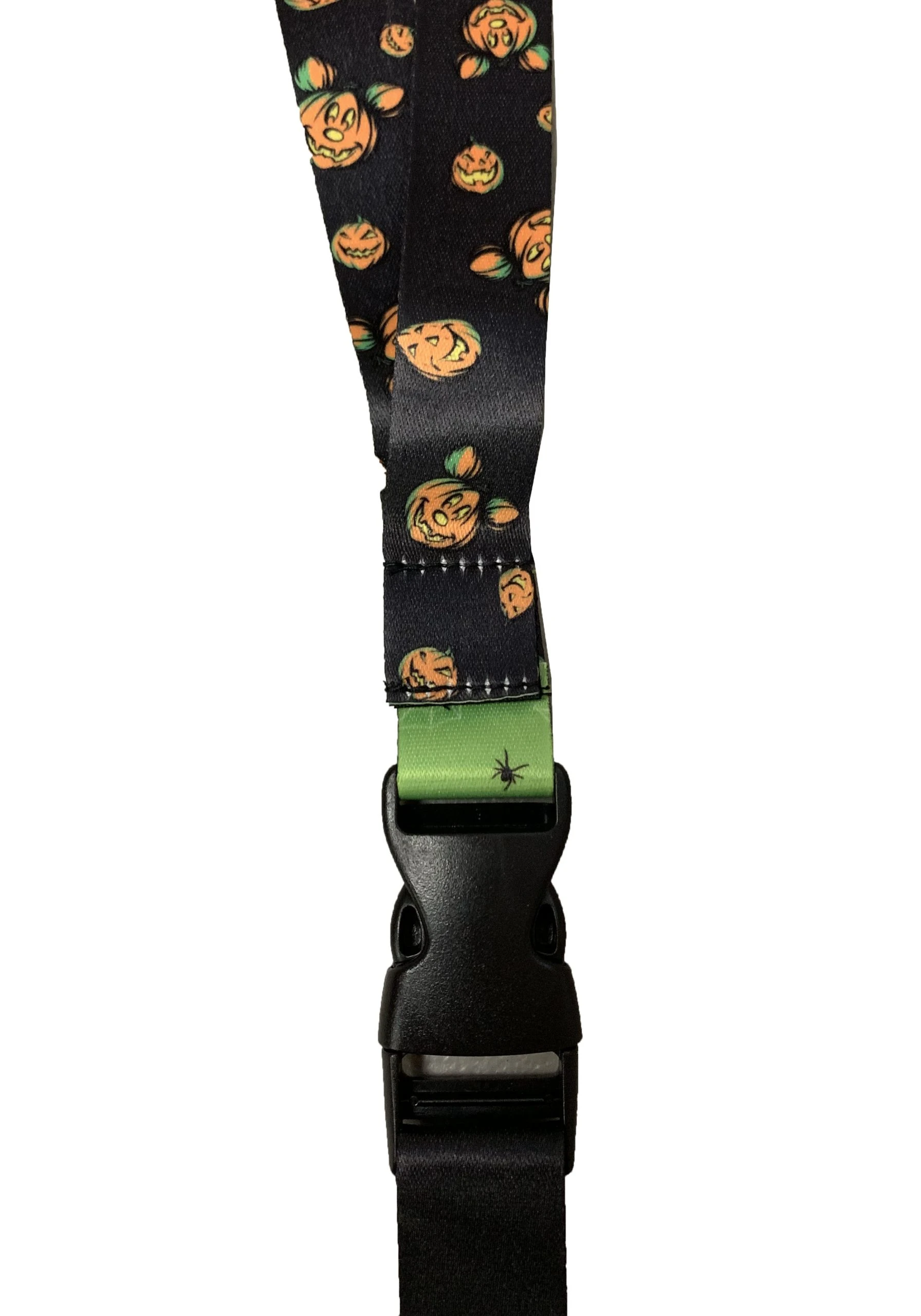 Get ready for some pin trading fun with this Halloween reversible lanyard, with Mickey Pumpkins on one side and Spiders on the other.