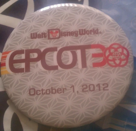 This Disney Souvenir Button was released to guests for Epcot’s 30th Anniversary and has Epcot 30, October 1, 2012 This Button was only for a 1 day Event, and won’t be around again.